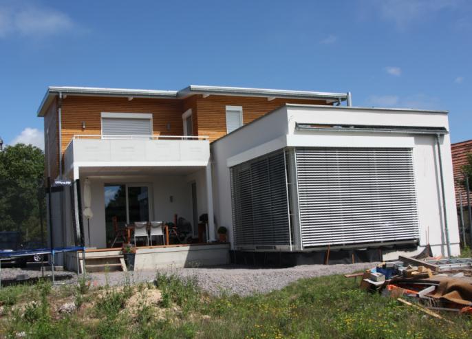 Der Gebäudestandard wurde durch geeignete Dämmmaßnahmen, Fenster mit entsprechenden U-Werten und Wahl der Anlagentechnik erreicht.