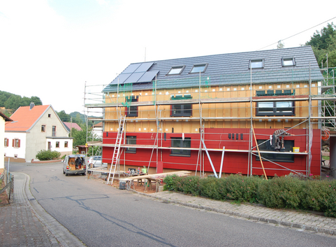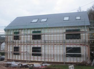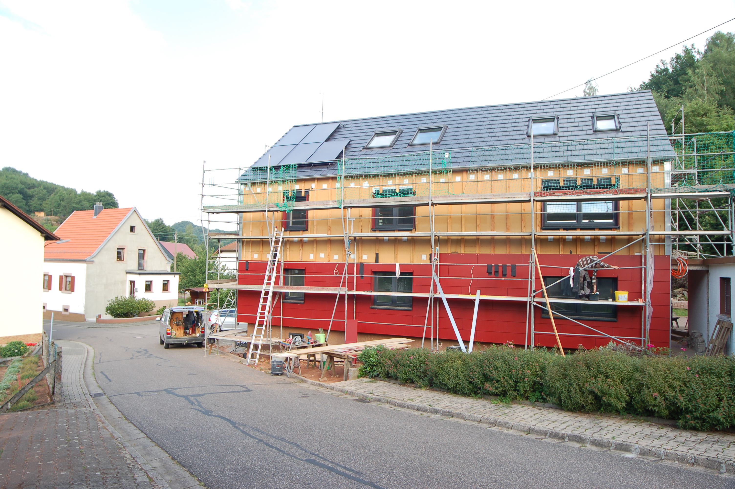 Der Gebäudestandard wurde durch geeignete Dämmmaßnahmen, Fenster mit entsprechenden U-Werten und Wahl der Anlagentechnik erreicht.