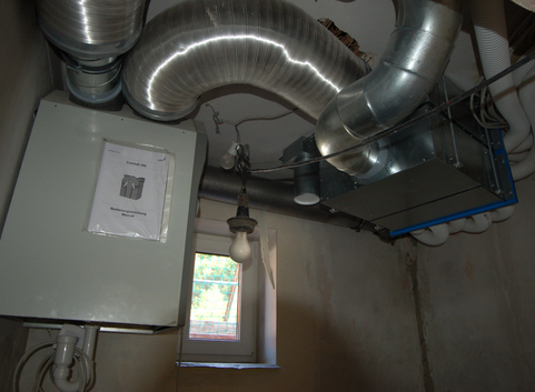 Es wurde eine zentrale Lüftungsanlage mit Wärmerückgewinnung >90% eingebaut.
