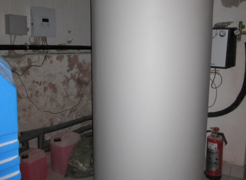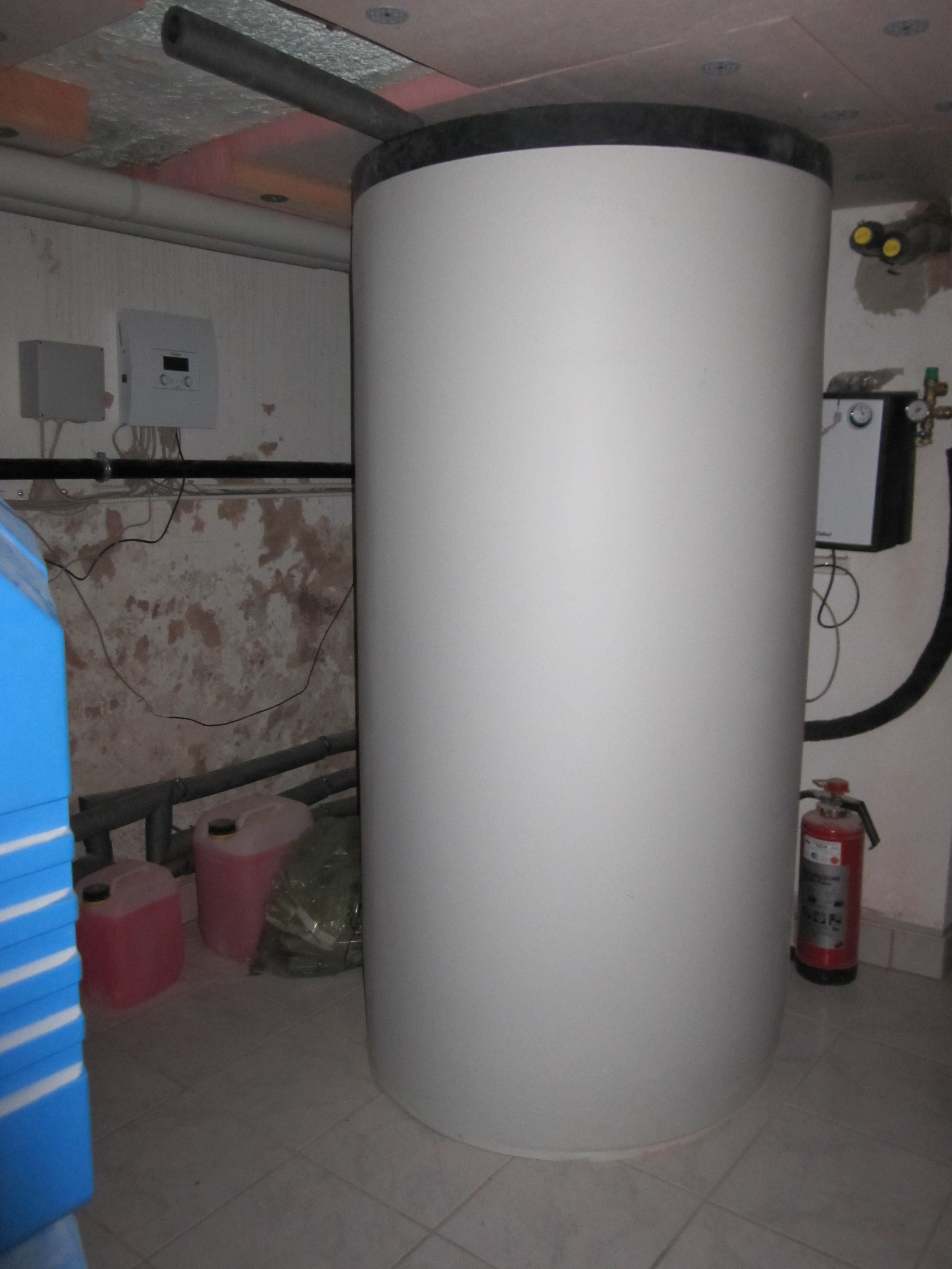Es wurde eine Luft-/Wasserwärmepumpe zur Warmwasseraufbereitung und Heizungsunterstützung eingebaut. Die Wärmeübertragung erfolgt über Heizkörper.