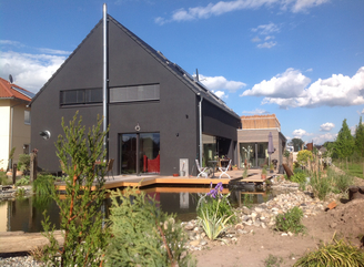 Der Gebäudestandard wurde durch geeignete Dämmmaßnahmen, Fenster mit entsprechenden U-Werten und der Wahl der Anlagentechnik erreicht.