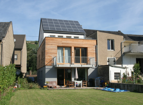 Der Gebäudestandard wurde durch geeignete Dämmmaßnahmen, Fenster mit entsprechenden U-Werten und der Wahl der Anlagentechnik erreicht.